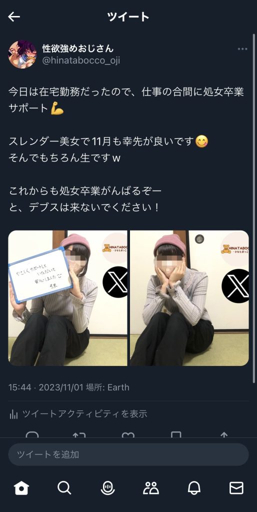 今回はX(旧Twitter)で知り合い、実際にヤった女の子との日記を書いていきます。