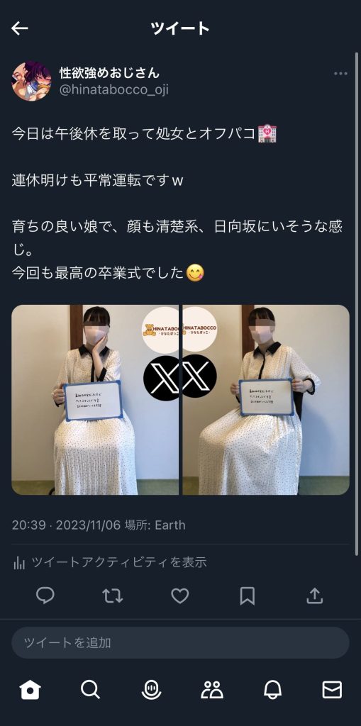 今回はX(旧Twitter)で知り合い、実際にヤった女の子との日記を書いていきます。