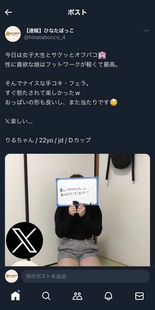 今回はX(旧Twitter)で知り合い、実際にヤった女の子との日記を書いていきます。